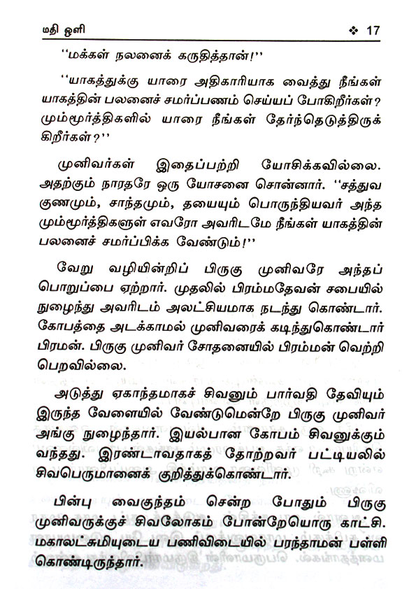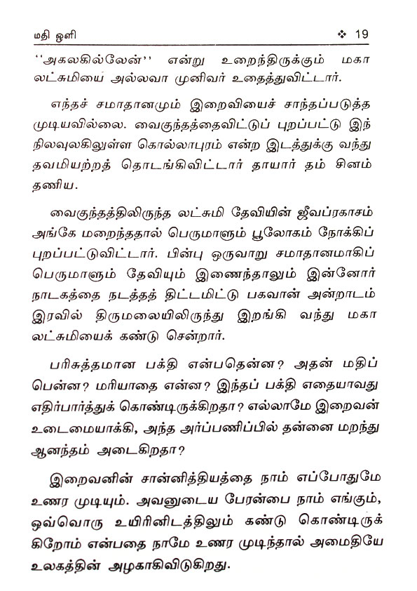 ‘மதிஒளி‘ எனும் ஆன்மீக ஒளியின் மாயா ஜால எழுத்துகளில் பொதிந்திருப்பது எப்படிப்பட்ட அகண்ட ஞானம்.எத்தனை எத்தனை ஆன்மீகச் செய்திகள்… எத்தனை ஆன்மீகக் கோணங்கள்… எத்தனை விசாலமான பார்வைகள்.